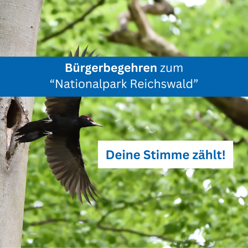 Die Initiative Internationalpark Reichswald startet ein Bürgerbegehren, um den Kreis Kleve aufzufordern, eine Bewerbung für den Nationalpark abzugeben. Entscheidet sich der Kreistag am 23.4. dennoch gegen die Bewerbung, kommt es zu einem Volksentscheid – das heißt, die Bürger*innen des Kreises Kleve entscheiden per (Brief-)Wahl an der Urne. Hierfür müssen zuerst 12.000 Unterschriften gesammelt werden. Teilnahmeberechtigt sind alle zu Kommunalwahlen im Kreis Kleve wahlberechtigten Personen ab 16 Jahren.